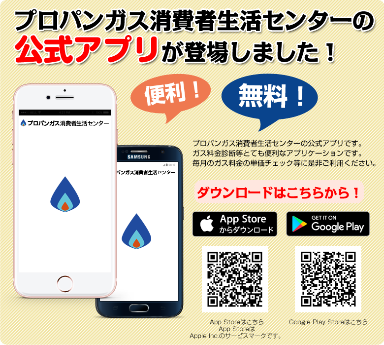 プロパンガス消費者生活センターの公式アプリは無料です!