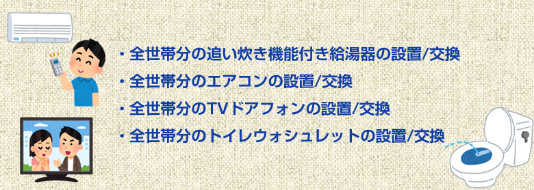 給湯器/エアコン/TVドアフォン等設備の無償設置